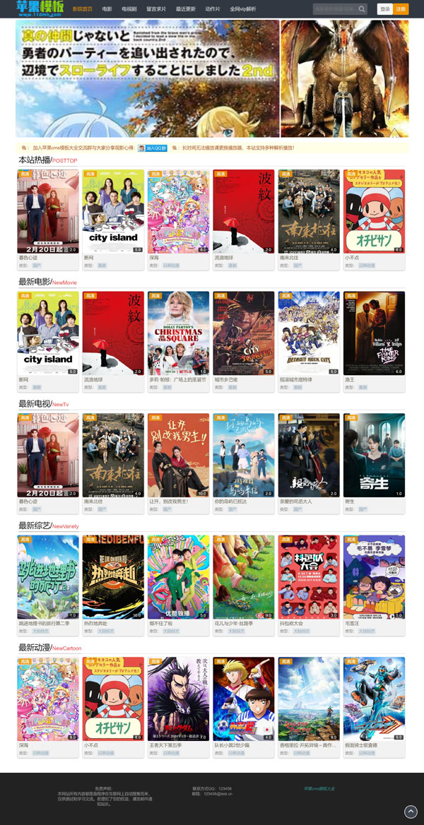 经典黑色影视网站风格,与传统最大区别在于,摒弃了左右栏设计,而是通栏居中,最大化将用户聚焦在主体内容上,避免了分散关注度。与网络流传版本相比,升级如下: