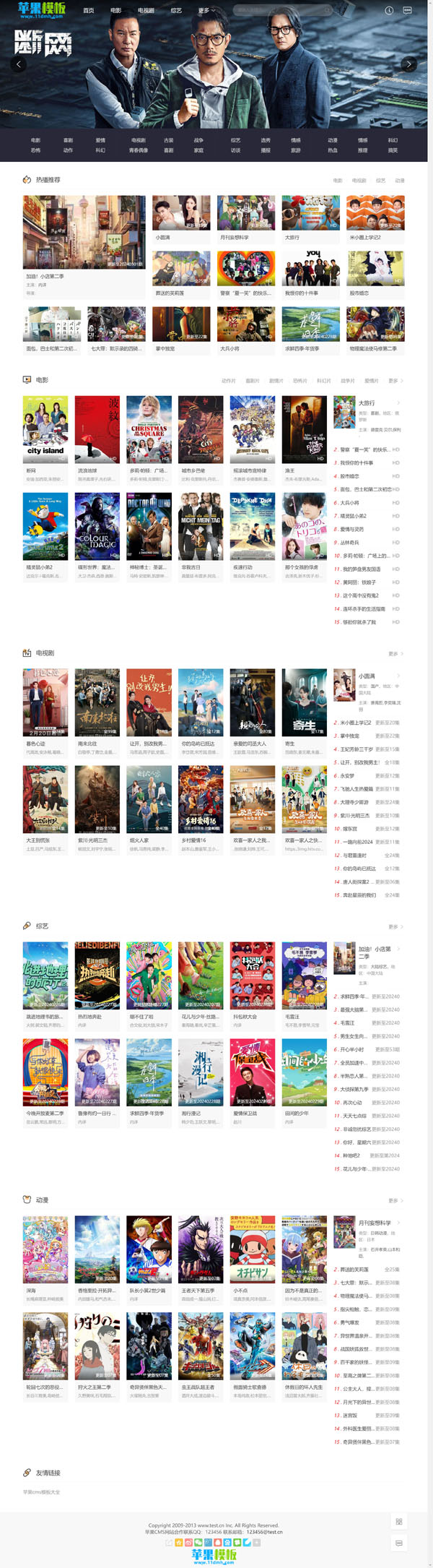 采用了目前主流的影视网站布局风格,既左侧内容详情,右侧排行榜的设计,并加入了次级导航栏,方便用户更快的查找,同时大幅优化了pc端代码,减少了无效代码,将更多的流量注入到wap移动端上面,更符合当前的站长实际需求。