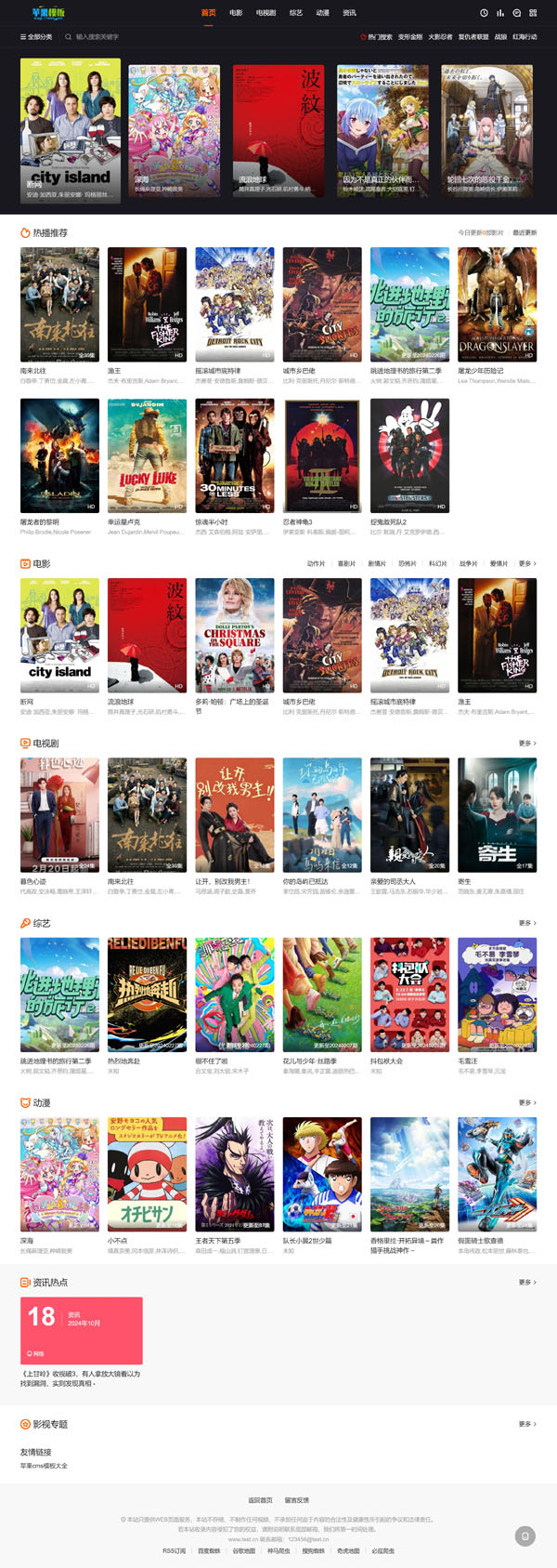 最近在浏览网站时候,看到一款古早款影视网站,发觉其首页幻灯片跑马灯设计,以及详情页的紧凑安排布局,很有特点,便花了一些时间将其仿了下来,因为原始模板过于老旧,不支持移动端,便有进行了pc、wap自适应的开发。