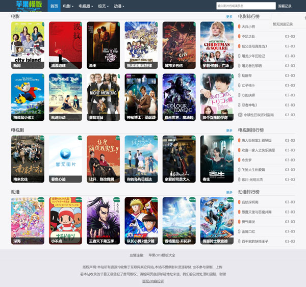 这套模板的母板是一款非常成熟影视自适应模版,这一版本针对于追求极简、聚集站长朋友;代码已经千锤百炼,无明显bug,支持pc、wap自适应访问,推荐模板!