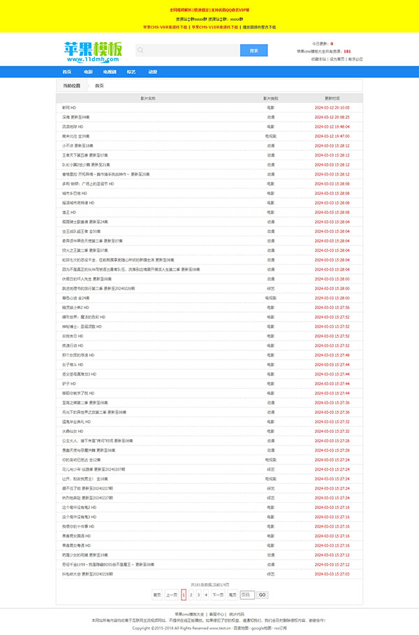 清爽简约风的资源站/下载站风格,首页采用文字列表,最大化显示更多影视内容,整个页面最大化减少js特效及展示,大大提高了页面加载速度,可以实现既打开既显示的极速。