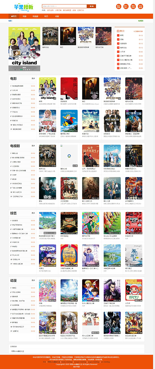 橙色是非常少见的模板颜色,但是展示效果却很出色,这款橙色影视网站自适应模板,是兼容pc、wap自适应访问,也算是一个小精品。