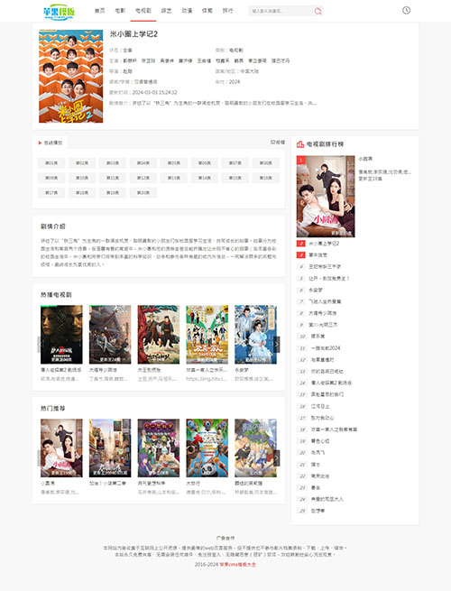 白色简约设计,首页banner及播放页设计非常出色,特别适用于影视站、电影站模板,代码兼顾pc、wap自适应访问,推荐模板!