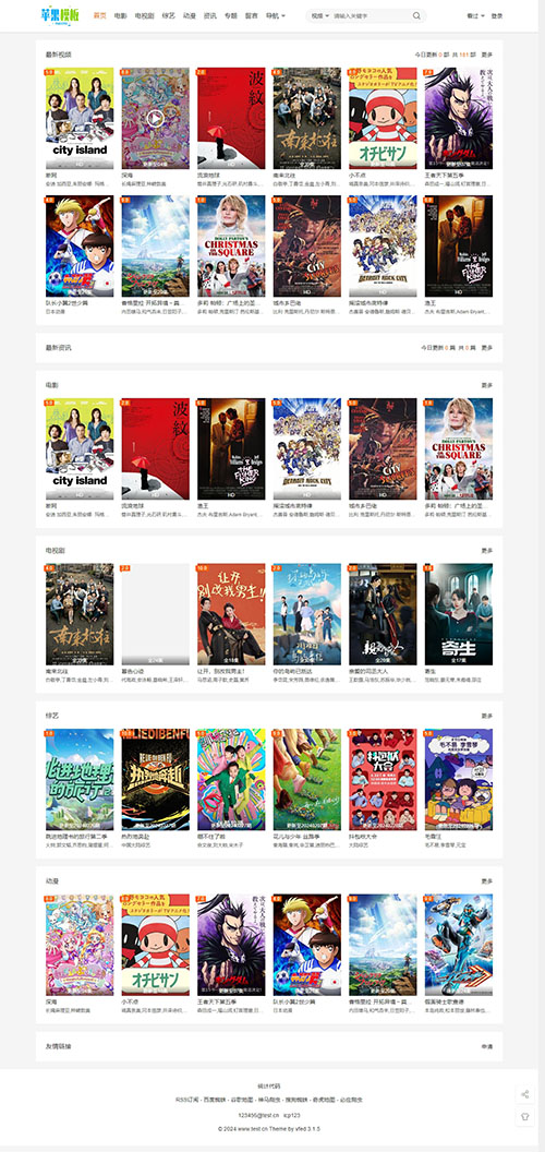 –主题模块:视频文章专题用户中心站内公告影院热映