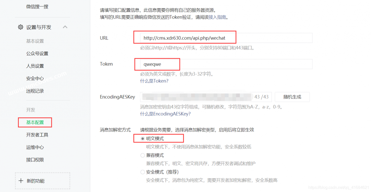EncodingAESKey:点击下随机生成即可