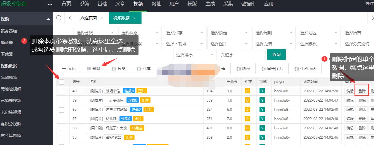 上面的删除方法使用后,会出现部分数据为空的播放组,最后再删除一遍空播放组即可