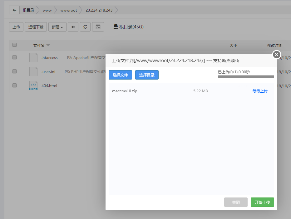 解压上传的CMS程序,(maccms10.zip)。