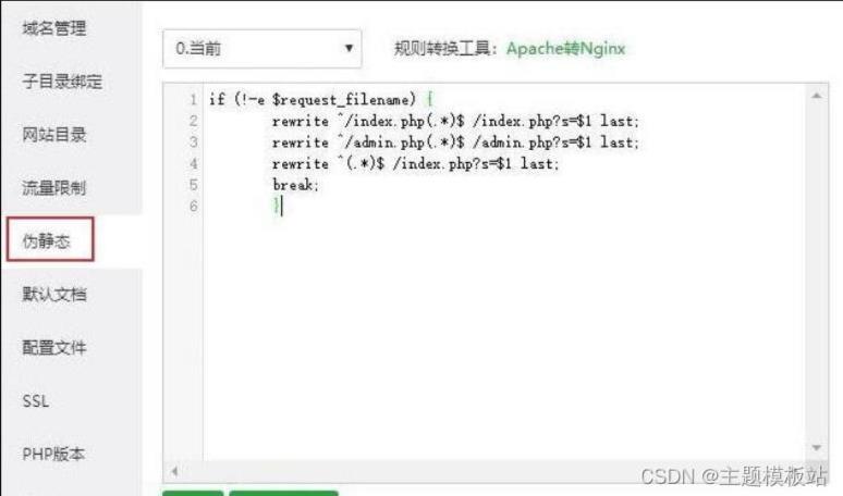 来到宝塔面板中的伪静态设置页面下,复制下面maccms.conf文件内的规则到这里,然后保存即可!如下图所示。(下面为规则代码)
