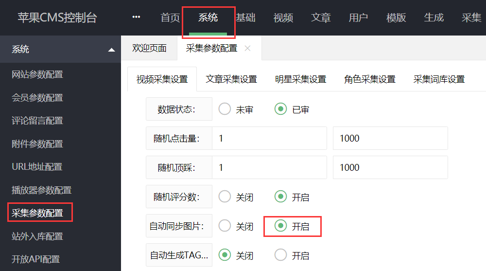 解决苹果CMS采集后没有显示图片的问题 作者: 无 • 更新时间:2025-11-18 •阅读 一般采集数据后,图片容易丢失,如下: 解决方法: ①进入后台按顺序点击:视频>视频数据>同步图片(这个步骤是同步已经采集过的视频图片) ②开启下次采集自动同步图片配置步骤:系统>采集参数配置>开启 本文采摘于网络,不代表本站立场,转载联系作者并注明出处:https://www.73as.com//pgjc/536.html
