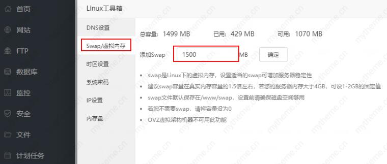 swap文件默认保存在/www/swap,设置前请确保磁盘空间够用