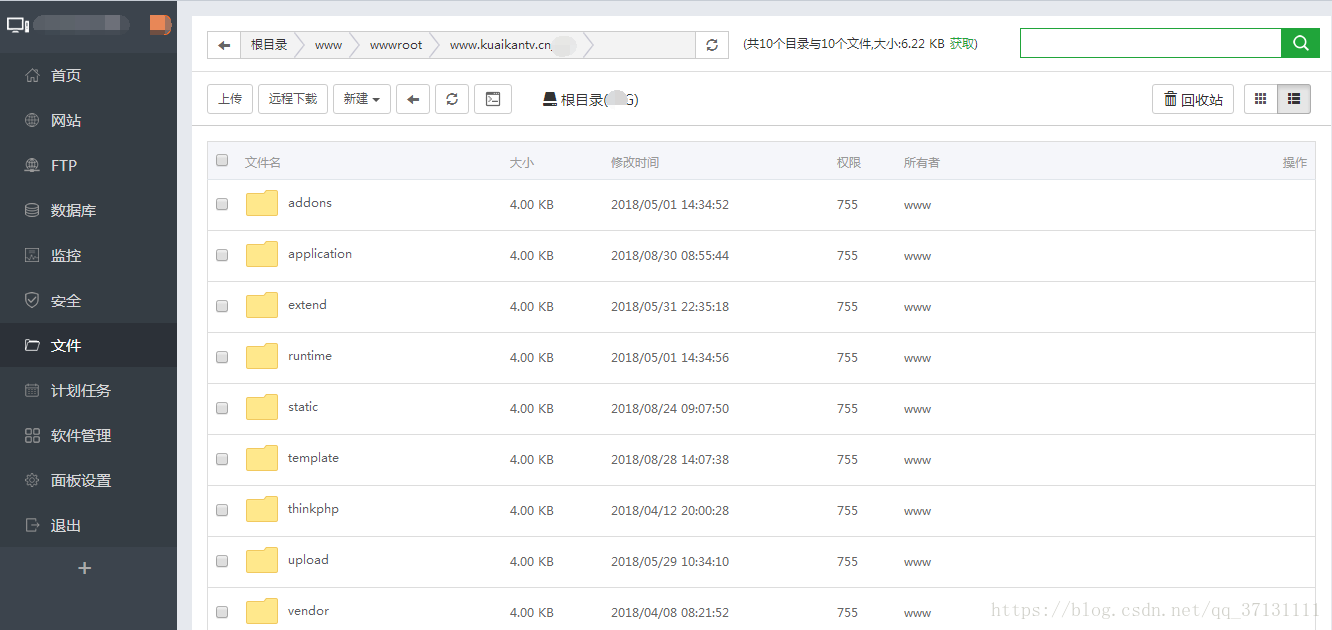 2、下载完成后上传到服务器根目录下,可以使用FTP工具上传,我使用的是宝塔,一方面是上传速度比较快,还有一个原因是因为FTP工具上传有可能需要设置权限,使用宝塔就比较方便了,上传完成后解压。