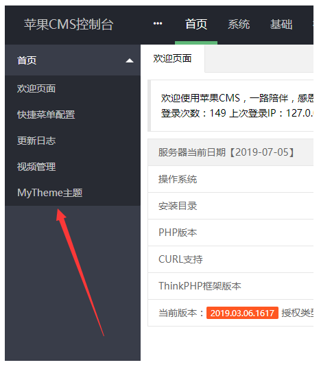 菜单填写格式:MyTheme主题,/template/mytheme/admin/