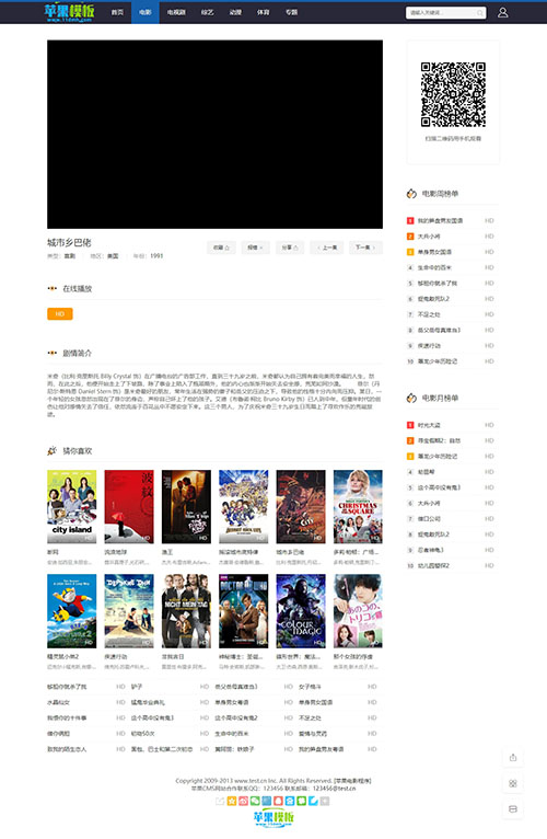 黑色影视网站自适应模板4号,是根据黑色2号、3号为母版,修改而来,因此与前面模板的相似度很高,区别只是细节,同样的兼顾pc、wap自适应访问。