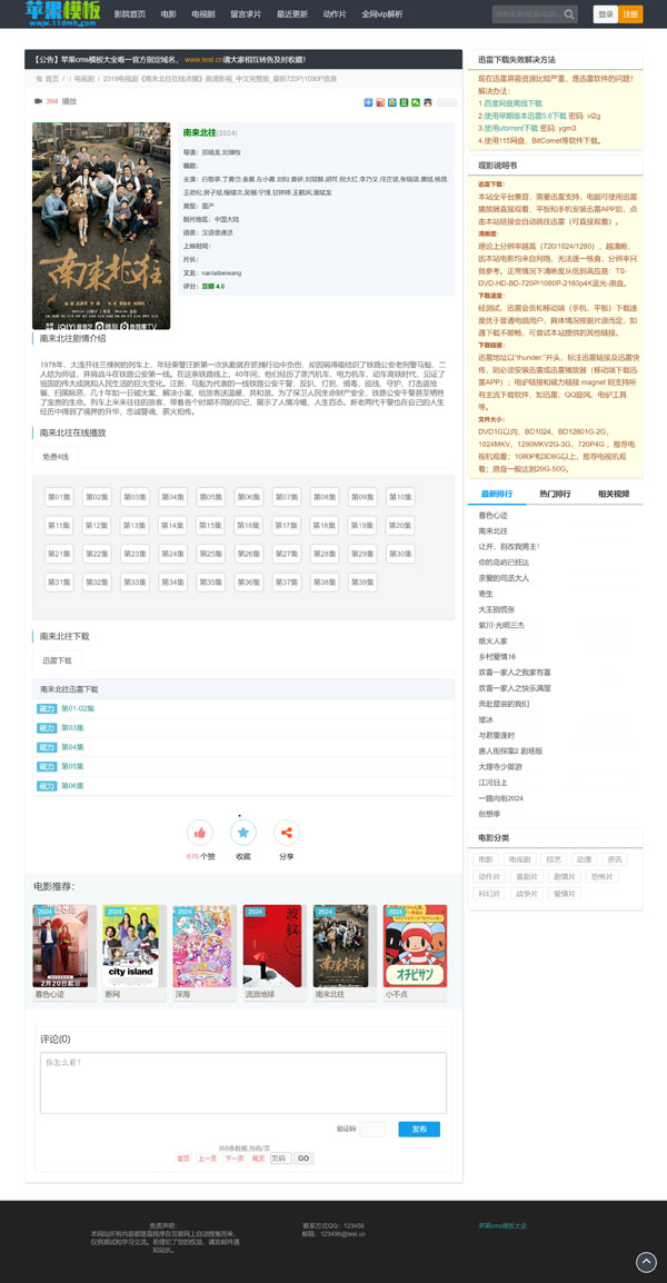 经典黑色影视网站风格,与传统最大区别在于,摒弃了左右栏设计,而是通栏居中,最大化将用户聚焦在主体内容上,避免了分散关注度。与网络流传版本相比,升级如下: