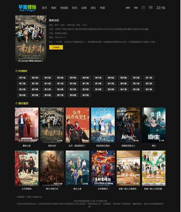 这次模板升级的目的,是为了适配于影视站,所以围绕详情页进行了比较多升级,如果你希望是首页、分类、详情、播放的层级结构,这款简约黑色样式,一定不要错过!代码支持pc、wap自适应访问,推荐模板!