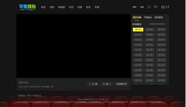 该模板是在黑色电影站\x站自适应8号模板基础上,将原本宽屏设计,改为了窄屏居中,使之更加的紧凑(新老版效果图可能不明显,实际上差别很大)。同时新增了详情页模板,可以满足影视剧集展示。
