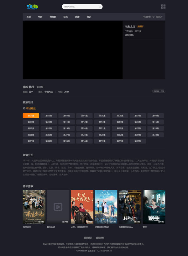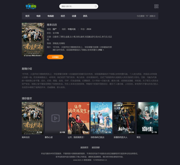 该模板制作精良,文件完整,首页、分类页、详情页、播放页等;且代码已支持pc、wap自适应访问,推荐模板!
