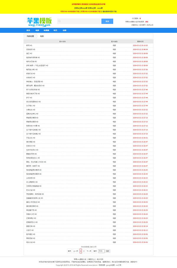清爽简约风的资源站/下载站风格,首页采用文字列表,最大化显示更多影视内容,整个页面最大化减少js特效及展示,大大提高了页面加载速度,可以实现既打开既显示的极速。