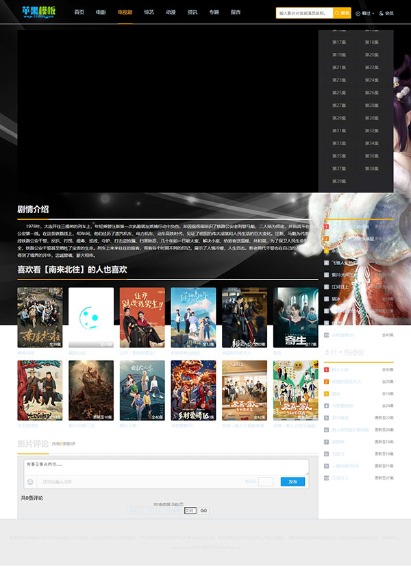 这是一款极简黑色电影站/x站模板,整站没有太多特效代码,只保留了最核心电影站功能,首页直达播放页,大大提高了用户访问效率,特别适用于电影站、x站,该模板支持pc、wap自适应访问。
